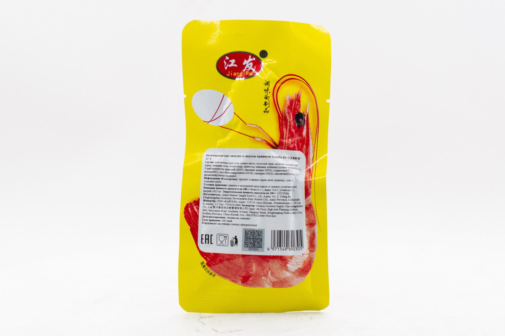 Вегетарианская закуска JiangFa со вкусом креветок (Китай) 20г0,00 руб. за штуку (в упак. 30 шт.) |